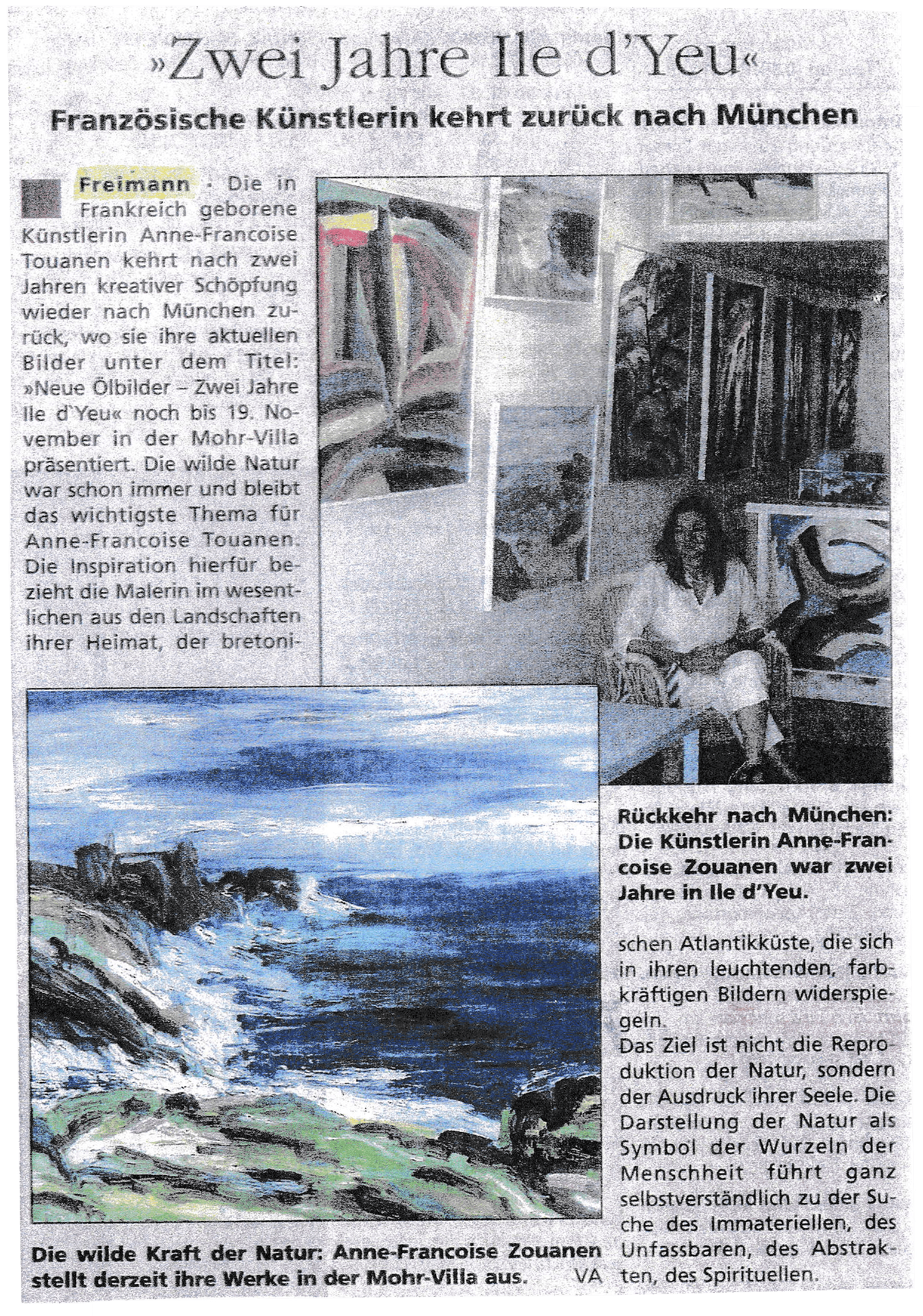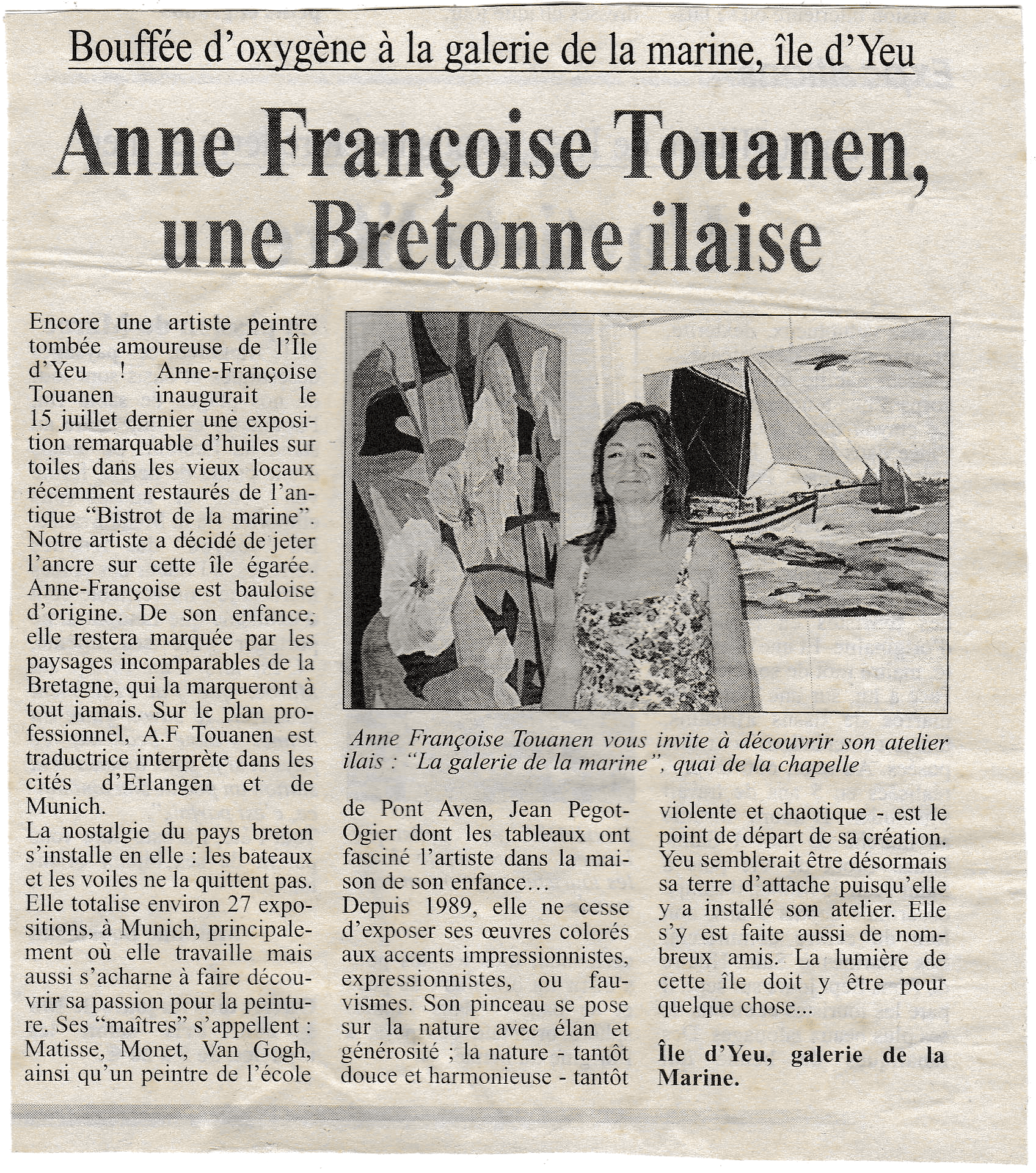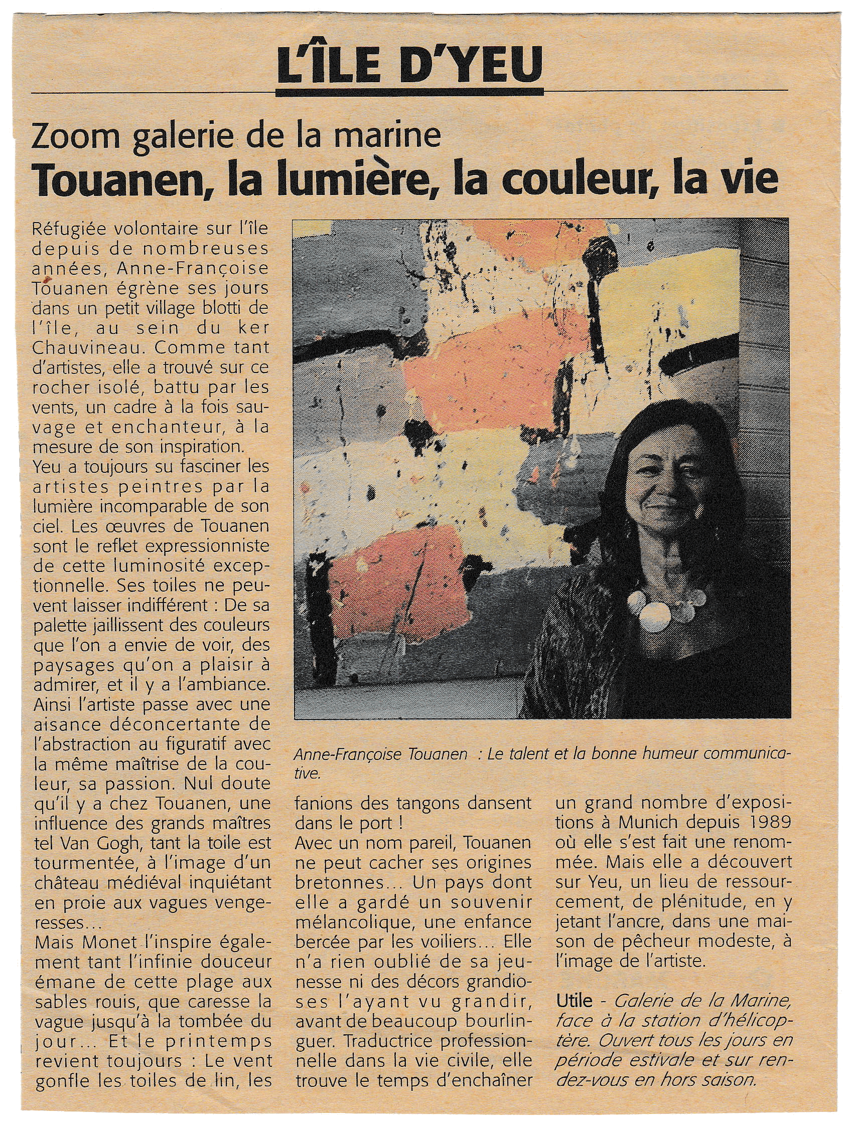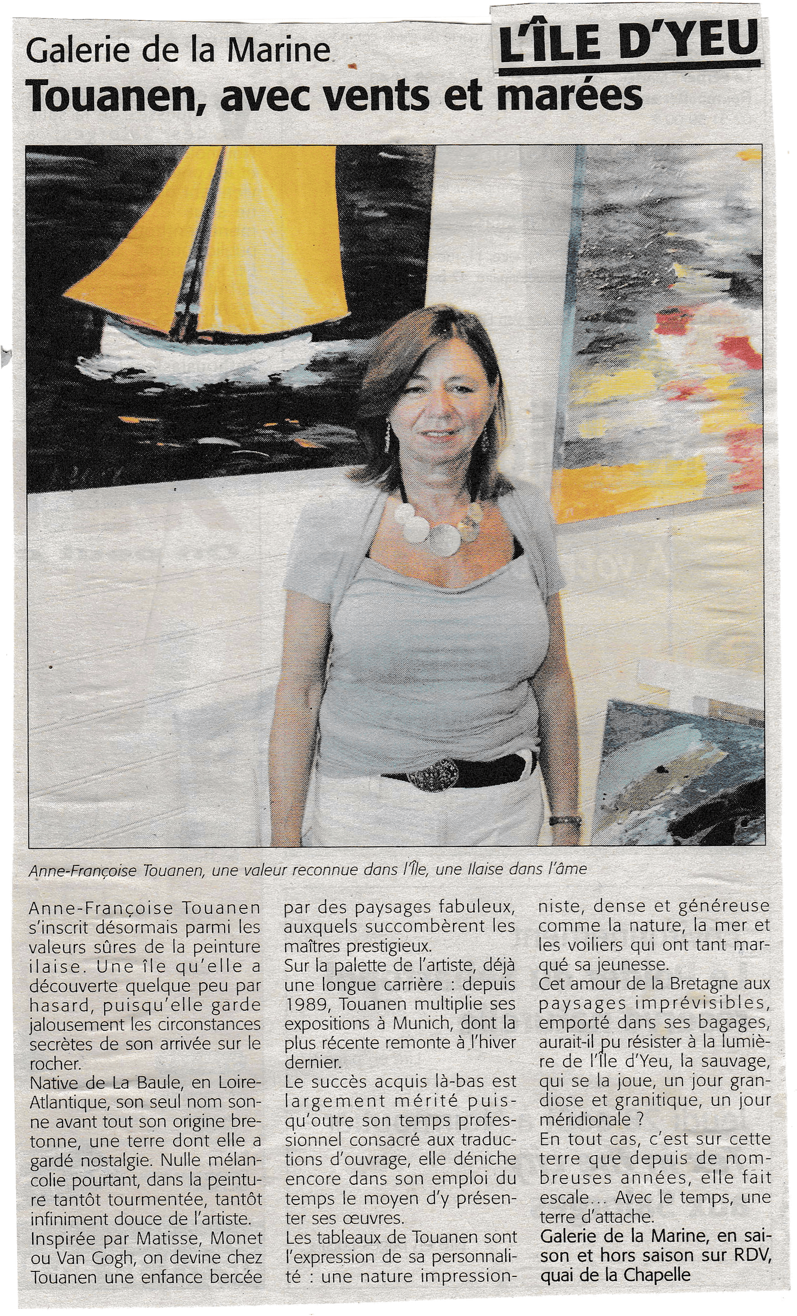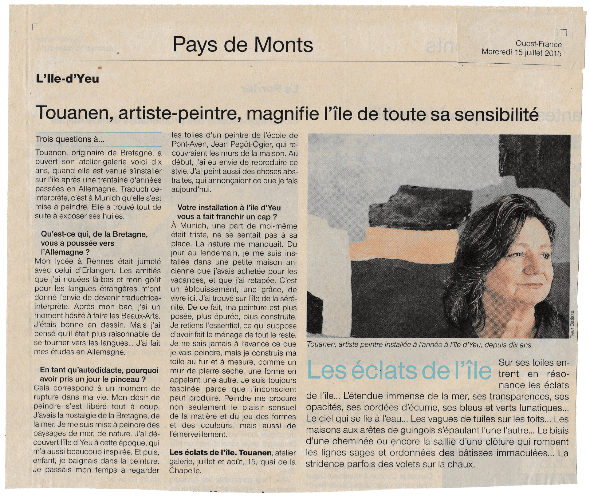 Anne-Françoise TOUANEN parle de sa vie à l'Île d'Yeu et de son activité artistique
